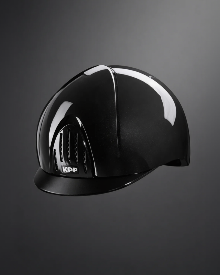 The KEP Smart Nova Riding Helmet with Polo Peak and textile finish features a distinctive glitter star panel, combining refined Italian design with subtle, eye-catching detail. The matte textile outer offers an elegant, understated appearance, while the glitter star panel adds a modern touch of individuality. The interchangeable polo peak provides a classic profile with additional sun coverage and timeless styling.